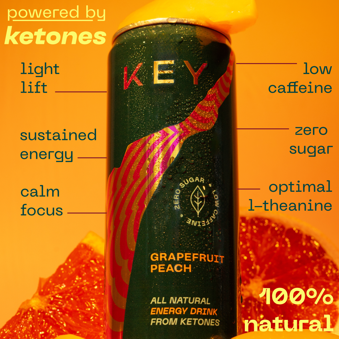 FEEL THE SHIFT. Unlock award winning new kind of energy! Revitalize with refreshing grapefruit and juicy peach powered by pure active ketones.